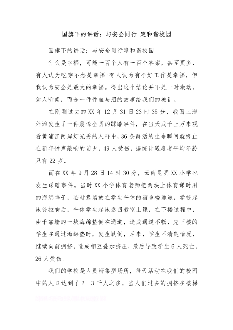 国旗下的讲话:与安全同行 建和谐校园[推荐]