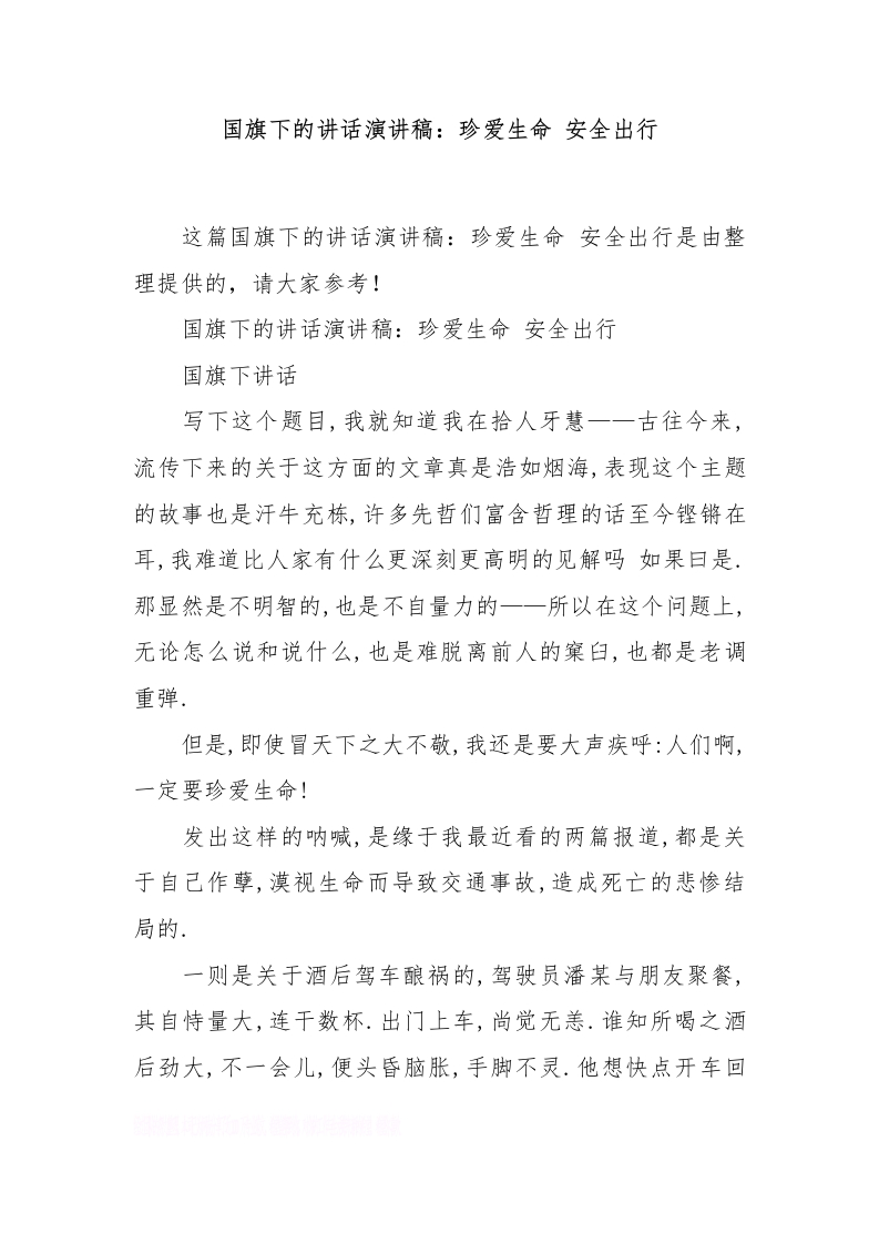 国旗下的讲话演讲稿:珍爱生命 安全出行[推荐]
