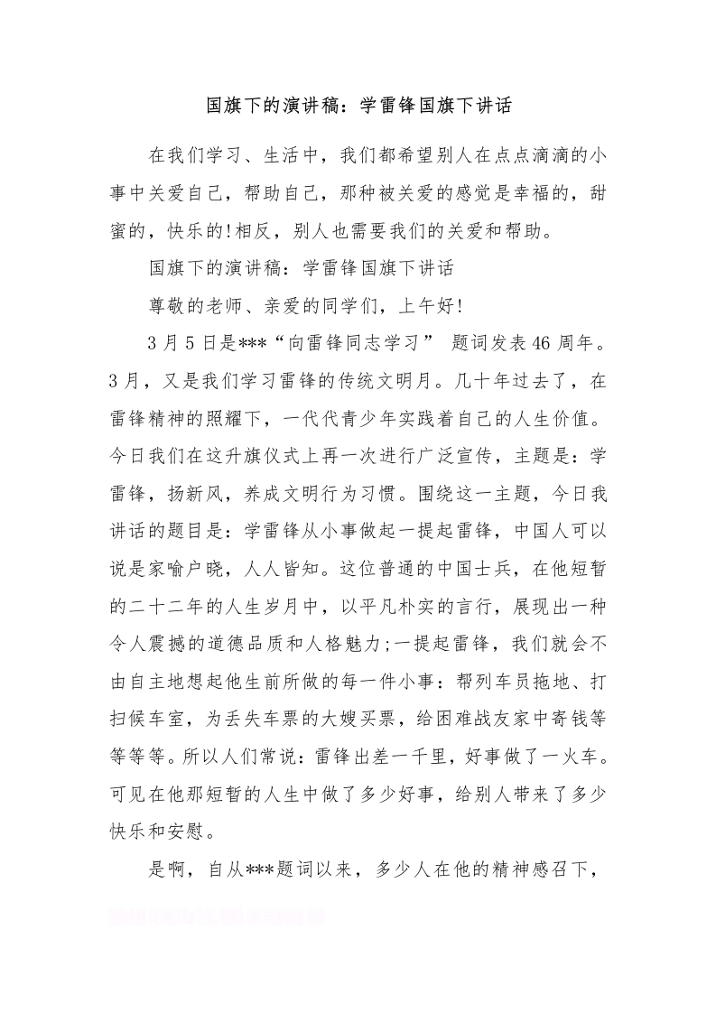 国旗下的演讲稿:学雷锋国旗下讲话[推荐]