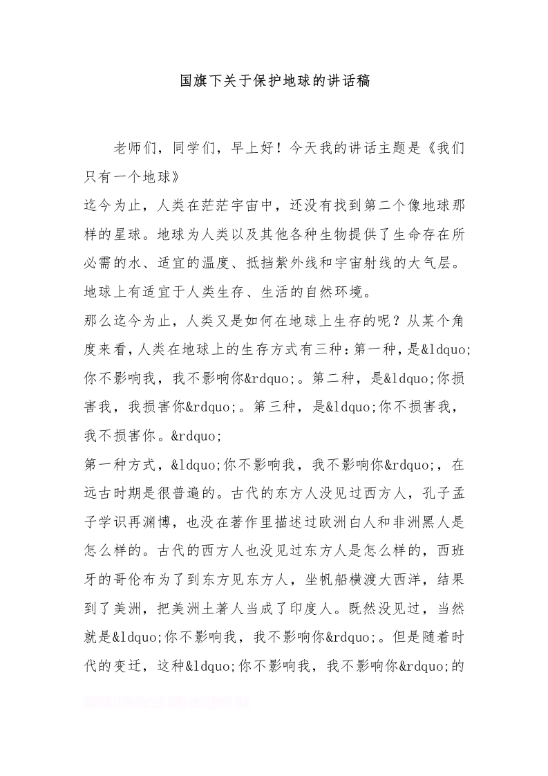 国旗下关于保护地球的讲话稿[推荐]
