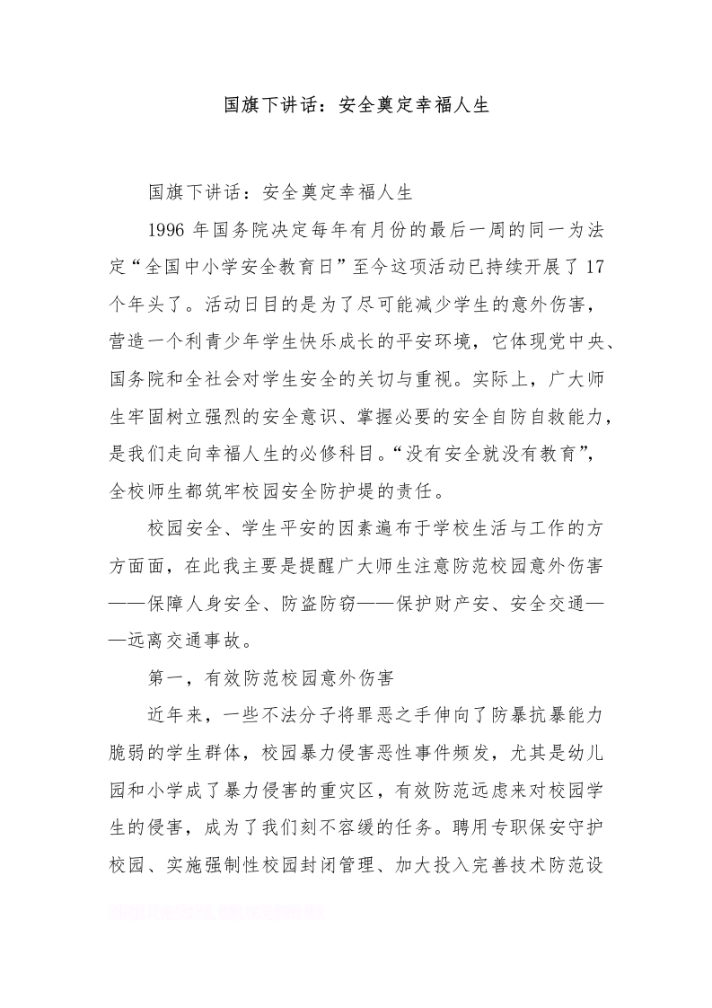 首页主题节日主题活动国旗下讲话:安全奠定幸福人生[推荐]