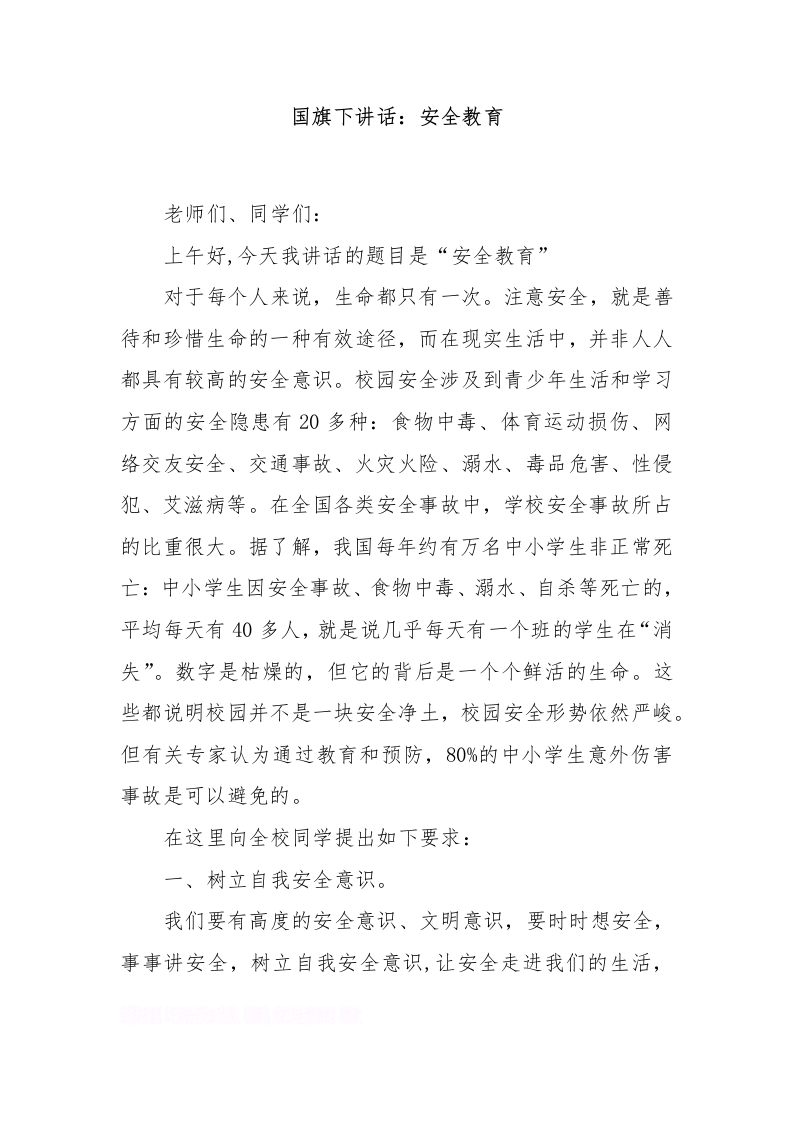 首页主题节日主题活动国旗下讲话:安全教育[推荐]