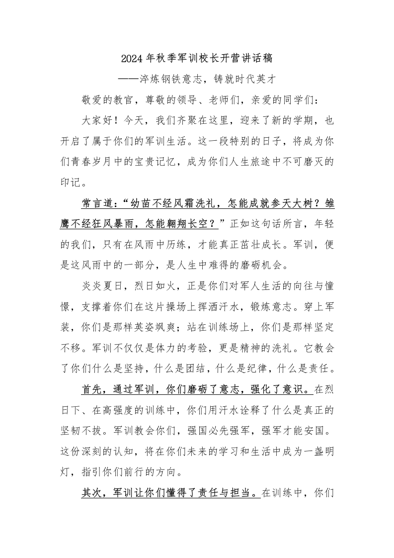 军训校长讲话稿