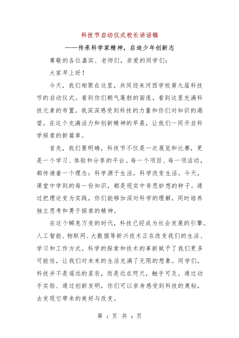 首页主题节日主题活动科技节启动仪式校长讲话稿