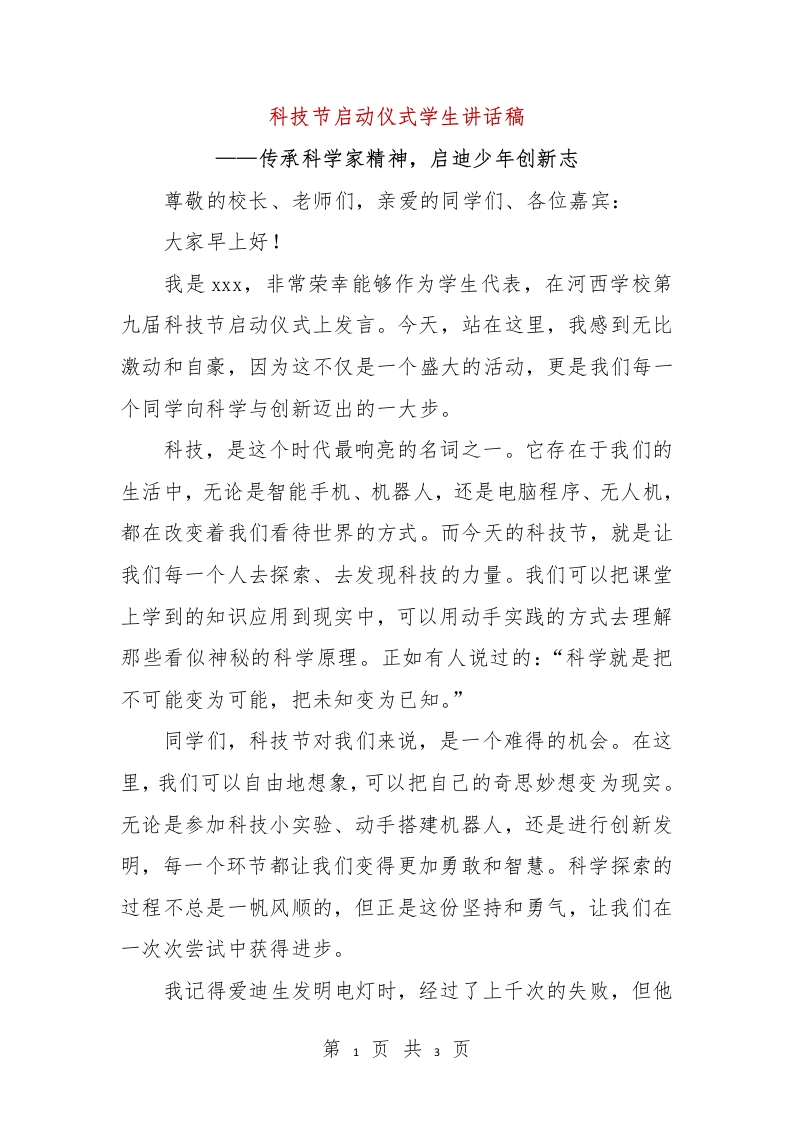 首页主题节日主题活动科技节启动仪式学生讲话稿
