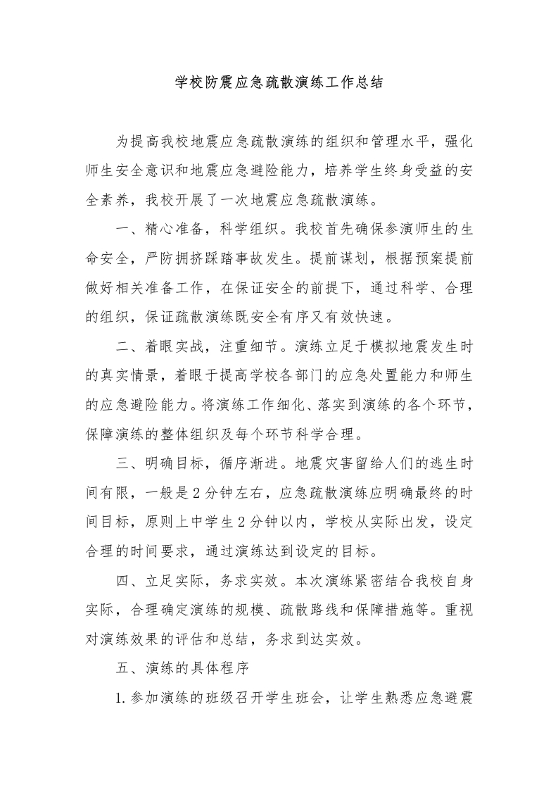 首页主题节日主题活动学校防震应急疏散演练工作总结