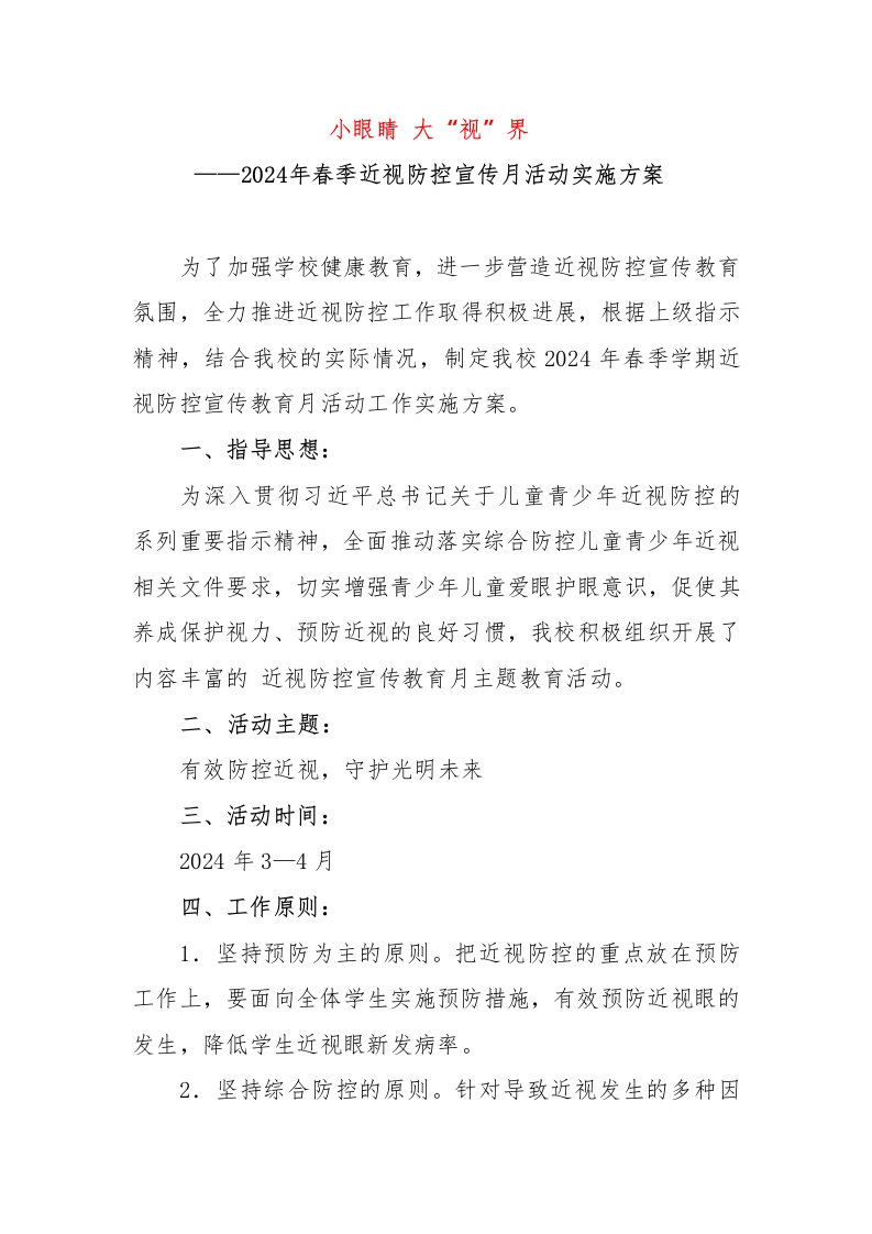 首页主题节日主题活动学校近视防控宣传月活动方案