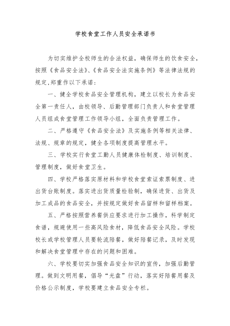 首页主题节日主题活动学校食堂工作人员安全承诺书