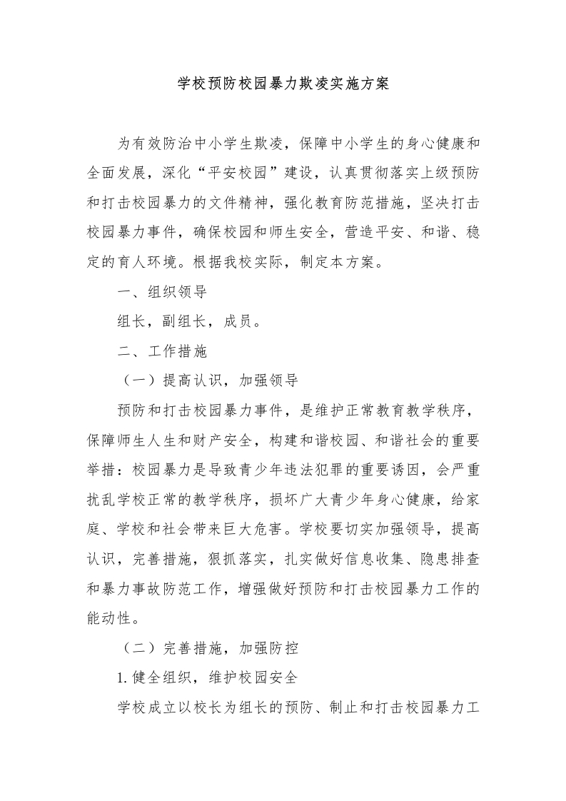 首页主题节日主题活动学校预防校园暴力欺凌实施方案