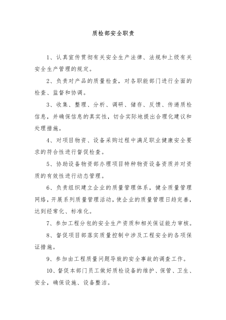 质检部安全职责