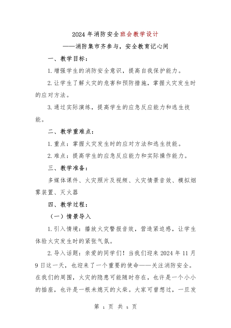 首页主题节日主题活动中小学消防安全主题班会教学设计