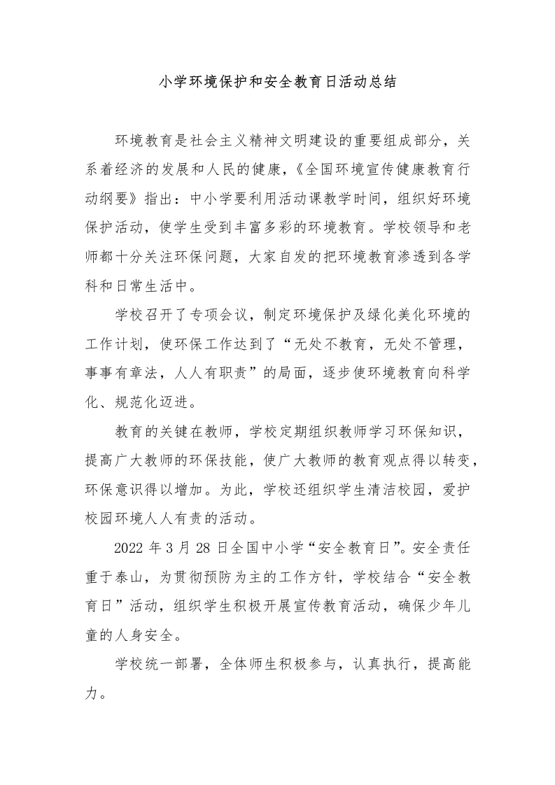 小学环境保护和安全教育日活动总结