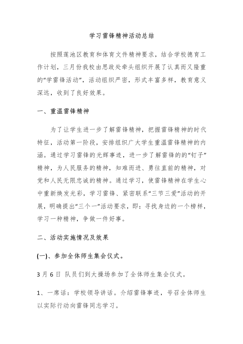 学雷锋活动总结