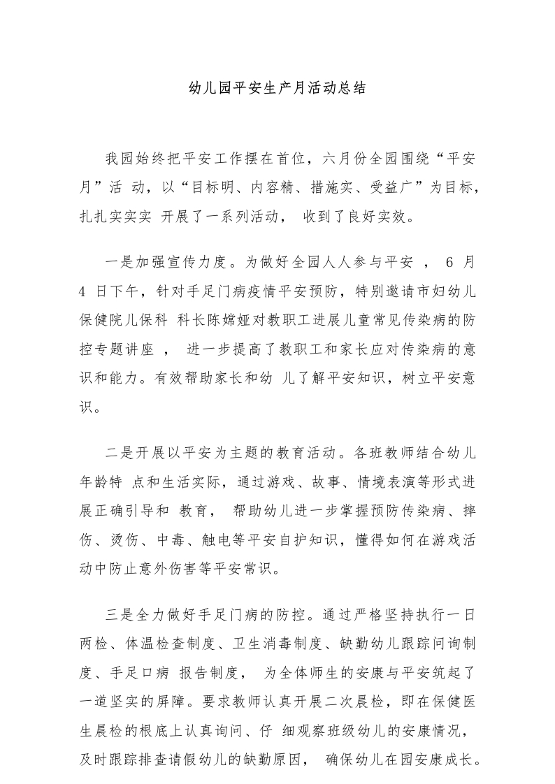 首页班主任资料班会教案幼儿园安全生产月活动总结活动总结(1)
