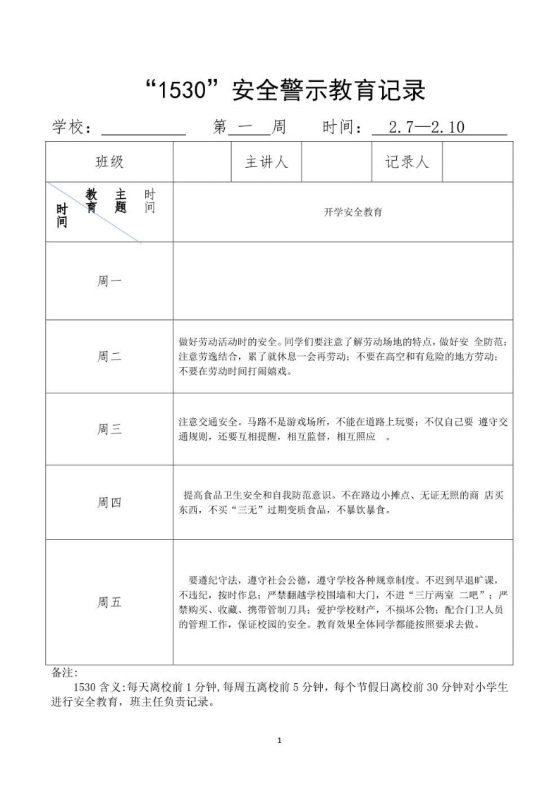 首页班主任资料班级管理“1530”安全教育记录表(2023年)(1)