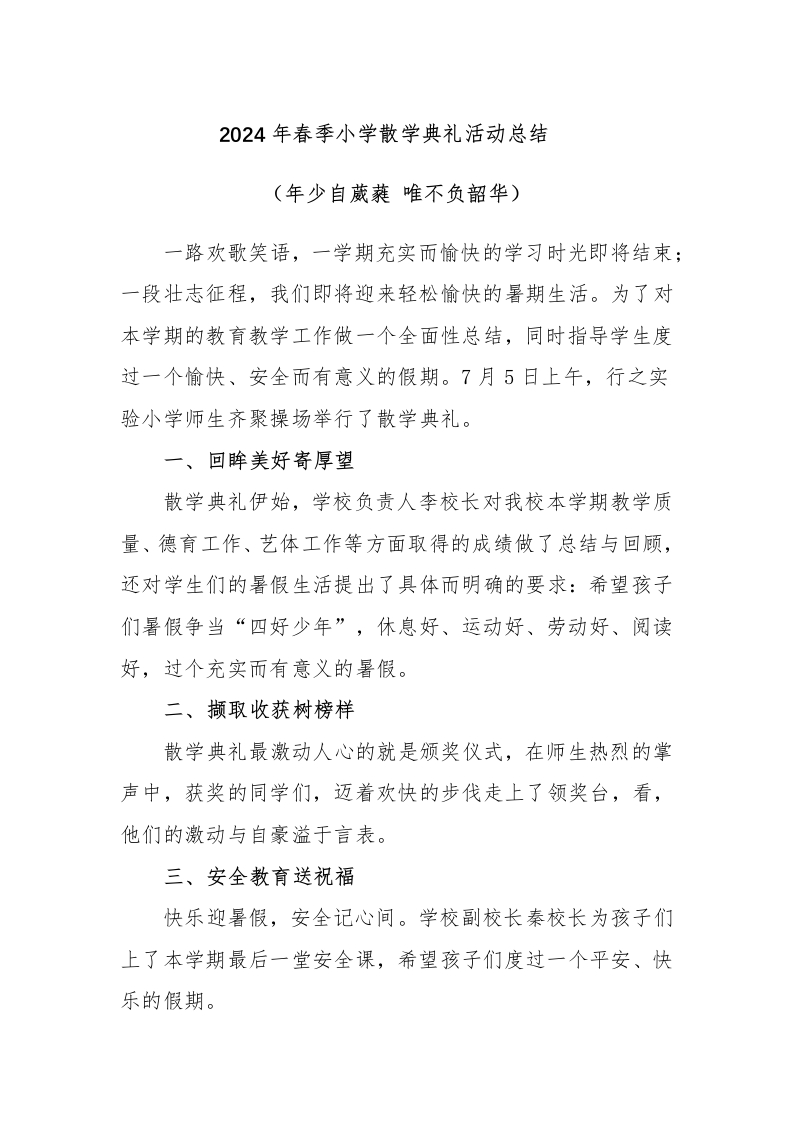 首页班主任资料计划总结2024年春季小学散学典礼活动总结(精选)