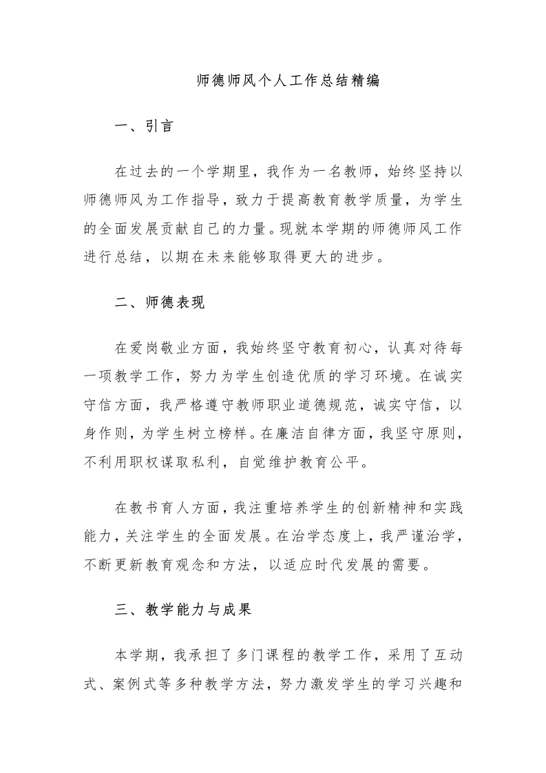 师德师风个人工作总结精编