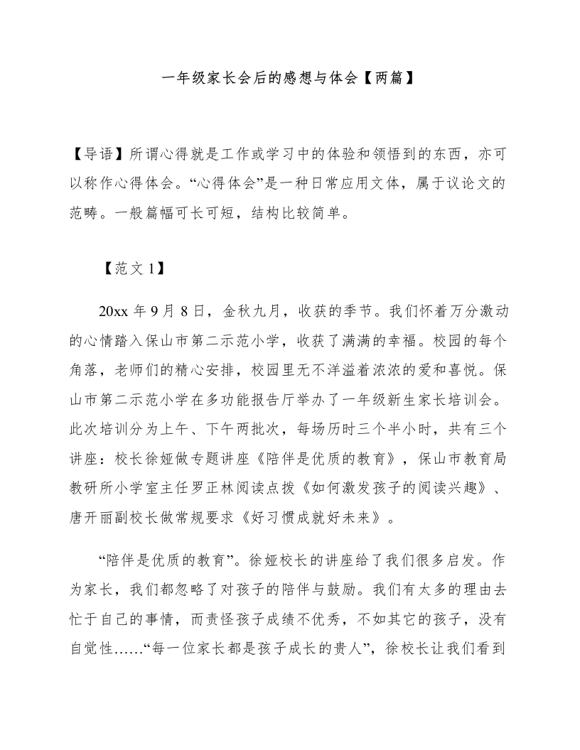 一年级家长会后的感想与体会【两篇】