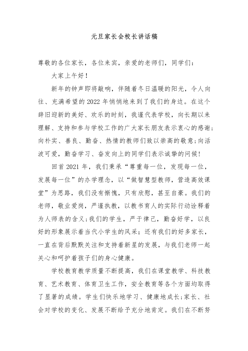 首页班主任资料家长家委元旦家长会 校长致辞稿