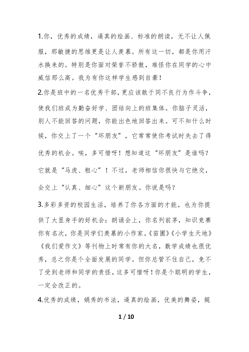 期末评语-按特长(1)