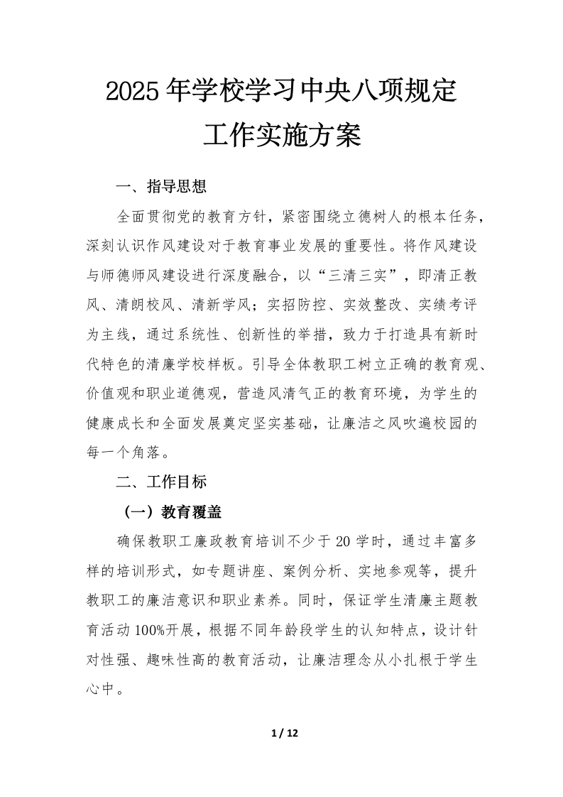 首页党建资料计划总结2025年学校学习中央八项规定工作实施方案(修订版)