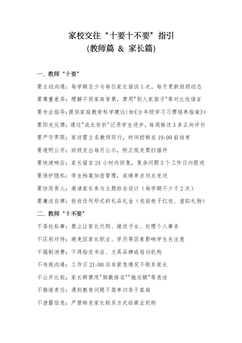 家校交往“十要十不要”指引