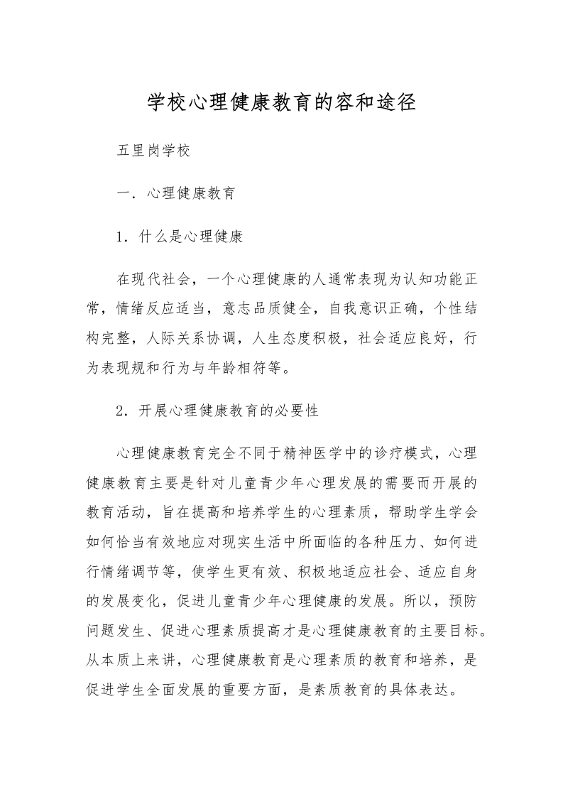 首页心里健康中学专题80.学校心理健康教育的容和途径