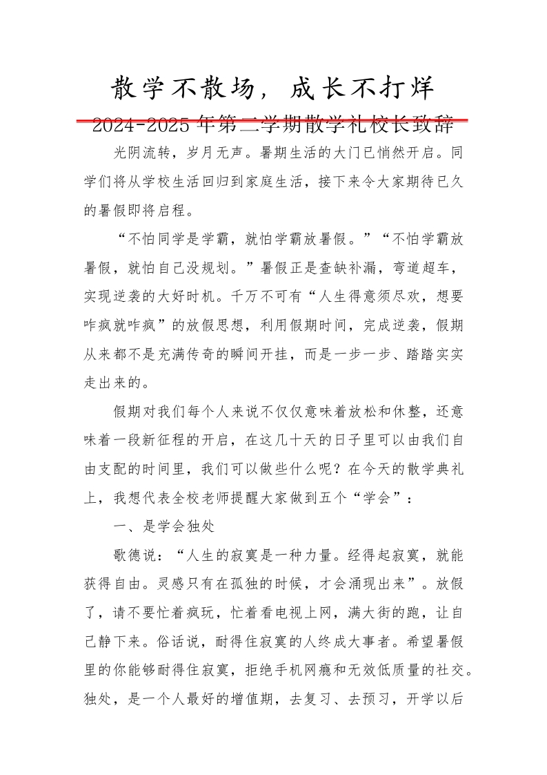 3.2024-2025年第二学期散学礼校长致辞