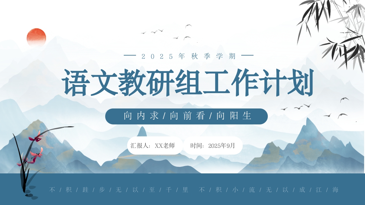 2025年秋季学期语文教研组工作计划向内求/向前看/向阳生汇报人:XX老师时间:2025年9月不/积/胜/步/无/以/至/千/里