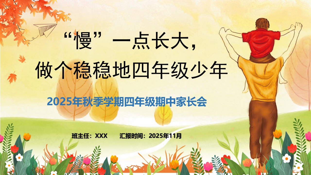 慢”一点长大,做个稳稳地四年级少年2025年秋季学期四年级期中家长会班主任:XXX汇报时间:2025年11月